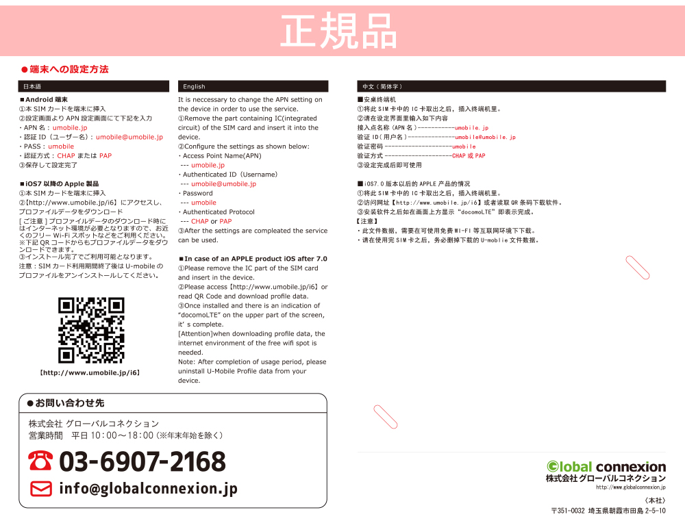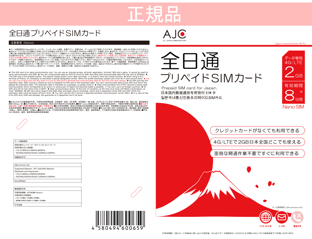 - AJC 全日通プリペイドSIMカードは、株式会社グローバルコネクションの登録商標です。